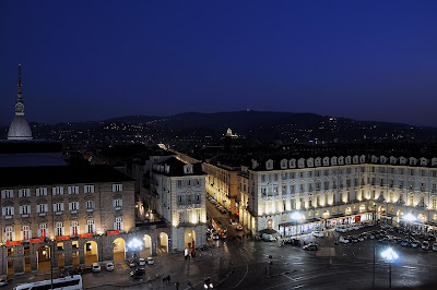 From Palazzo Madama, Piazza Castello, via Po, the Mole on the left, the hill on the background in a magic Sunset. Enjoy your weekend !