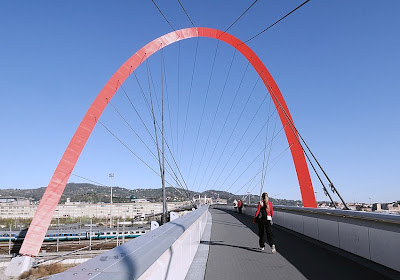 The marvellous red Arch holds on the Olympic Pedestrian bridge that link Lingotto to Olympic Village